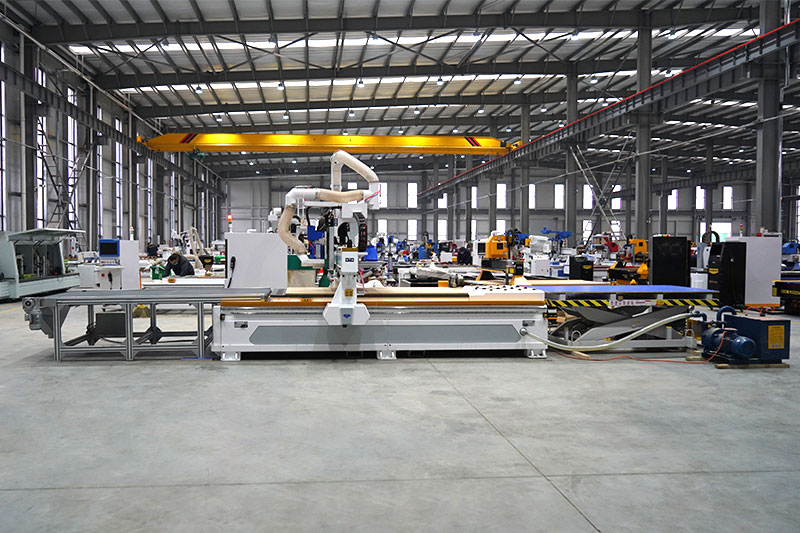 直排12把刀刀庫在龍門下邊,配自動上料平臺和自動下料平臺,節省換刀及上下料時間,生產效率高。