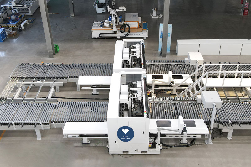 六面鉆雙機(jī)連線由兩臺數(shù)控六面鉆、定位機(jī)構(gòu)、高清讀碼器、自動輸送線及智能化控制系統(tǒng)組成,可與封邊機(jī)、開料設(shè)備組成自動化生產(chǎn)線。