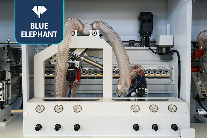 六輪壓貼使封邊板材和封邊帶雙面涂膠均勻并壓貼,保證粘合力更加牢固。