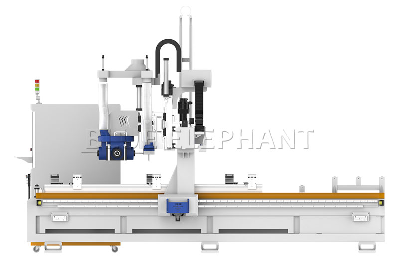 機器采用輔助上下料裝置,降低勞動強度,提高生產效率,專用門鎖控制系統,內置CAM軟件,門鎖造型豐富,模塊化操作,適合各種門型加工,操作界面簡單直觀,普通工人經過簡單培訓即可上手,無需專業編程人員,四水平主軸自由切換,一次即可實現不同工藝的加工,采用專用木門壓板固定臺面,固定精度高,定位開孔及開槽位置,加工精度更高。